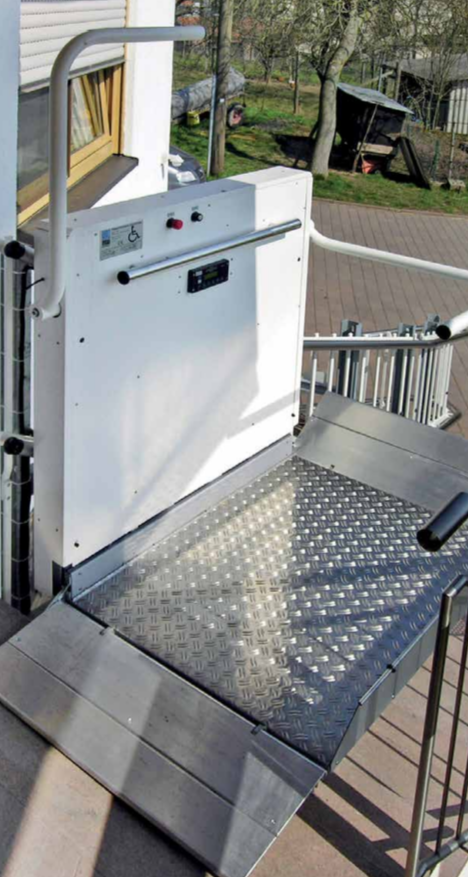 Гидравлическая платформа движется по направляющим внутри лифтовой шахты. Пассажир в состоянии самостоятельно ею управлять.